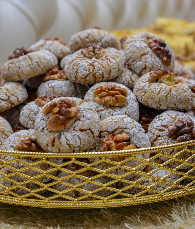 Cornes de gazelle (500g)Ces cornes de gazelle sont faites à la main avec une pâte fine et fondante fourrée à la pâte d’amandes parfumée à la fleur d’oranger. Chaque pièce est roulée avec soin pour offrir une douceur raffinée, idéale pour les grandes occasions ou simplement pour...